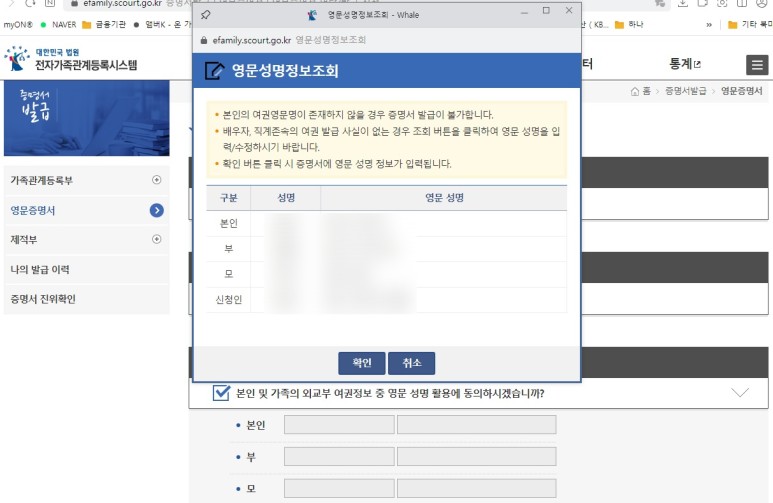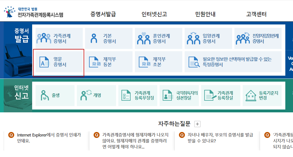 영문 가족관계증명서 인터넷 발급 방법, 대법원 가족관계등록시스템